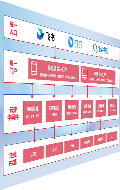 对协作平台提供支持服务,,支持企业应用与协作平台对接,,,包含组织同步、、消息集成、、、、待办集成等。。。。支持目前主流的协作平台:钉钉、、、、企微和飞书。。